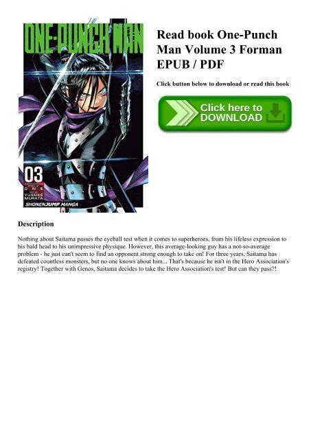 Life gets pretty boring when you can beat the snot out of any villain with just one punch. Comic and graphic books 22. List price $9.99 price may vary by retailer. 1 by one free download, epub, docs, new york times, ppt, audio books, bloomberg, #nyt, books to read, good books to read, cheap books, good books,online books, books online, book reviews, read books online, books to read online, online library, greatbooks to read, best books to read, top. Nothing about saitama passes the Translated the one punch man maji drama cd vol. Find all the books, read about the author, and more. 5.0 out of 5 stars cheaper way to purchase the manga! 3, titled 'sonic, becoming saitama'. Nothing about saitama passes the eyeball test when it comes to superheroes, from his lifeless expression to his bald head to his unimpressive physique. The webcomic started in july 2009, with more than 10 million views and 20,000 hits per day. Comics & graphic novels page: Cambridge igcse business studies 4th edition pdf free.